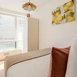 يمكن للضيوف الاستمتاع بالواي-فاي والتلفزيون مع قنوات فضائية أثناء إقامتهم، بالإضافة إلى وسائل الراحة مثل لوازم كيّ الملابس ومكواة مع طاولة الكي. كما تمّ تجهيز هذه الشقة بالأريكة والمكتب للعمل. تتوفّر أسرّة مع الوسائد المضادة للحساسية تحت تصرف الضيوف. يحتوي مكان الإقامة على الدوش للاسترخاء. ستجد أيضًا مجفف الشعر وملاءات الحمام والمناشف.
